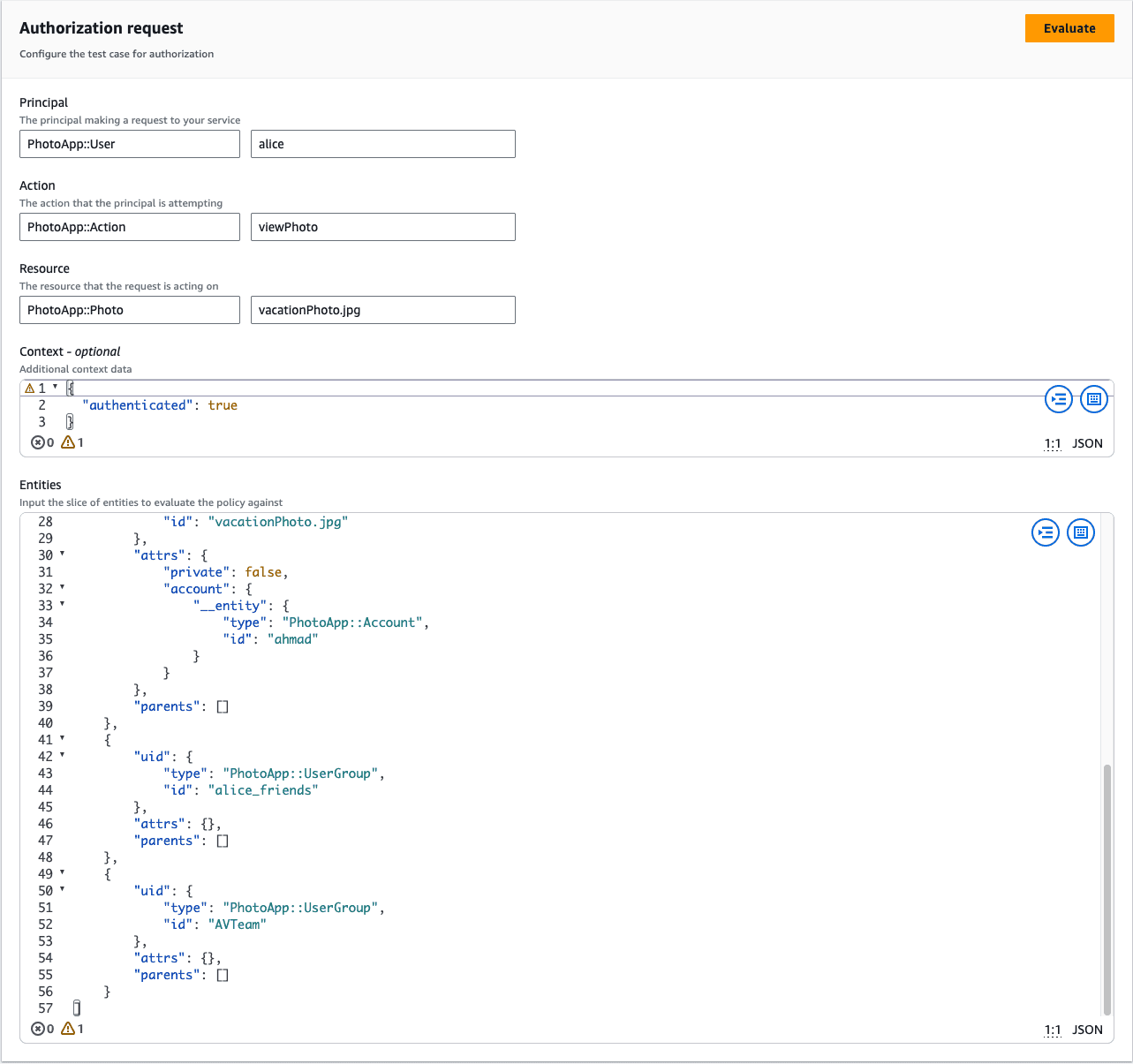 Cedar's own documentation shows the problem. Their photo sharing app example uses 57 lines to define a user named Alice, her group memberships, a photo, and an account owner. The schema adds another 131 lines (!) for entity types and actions.