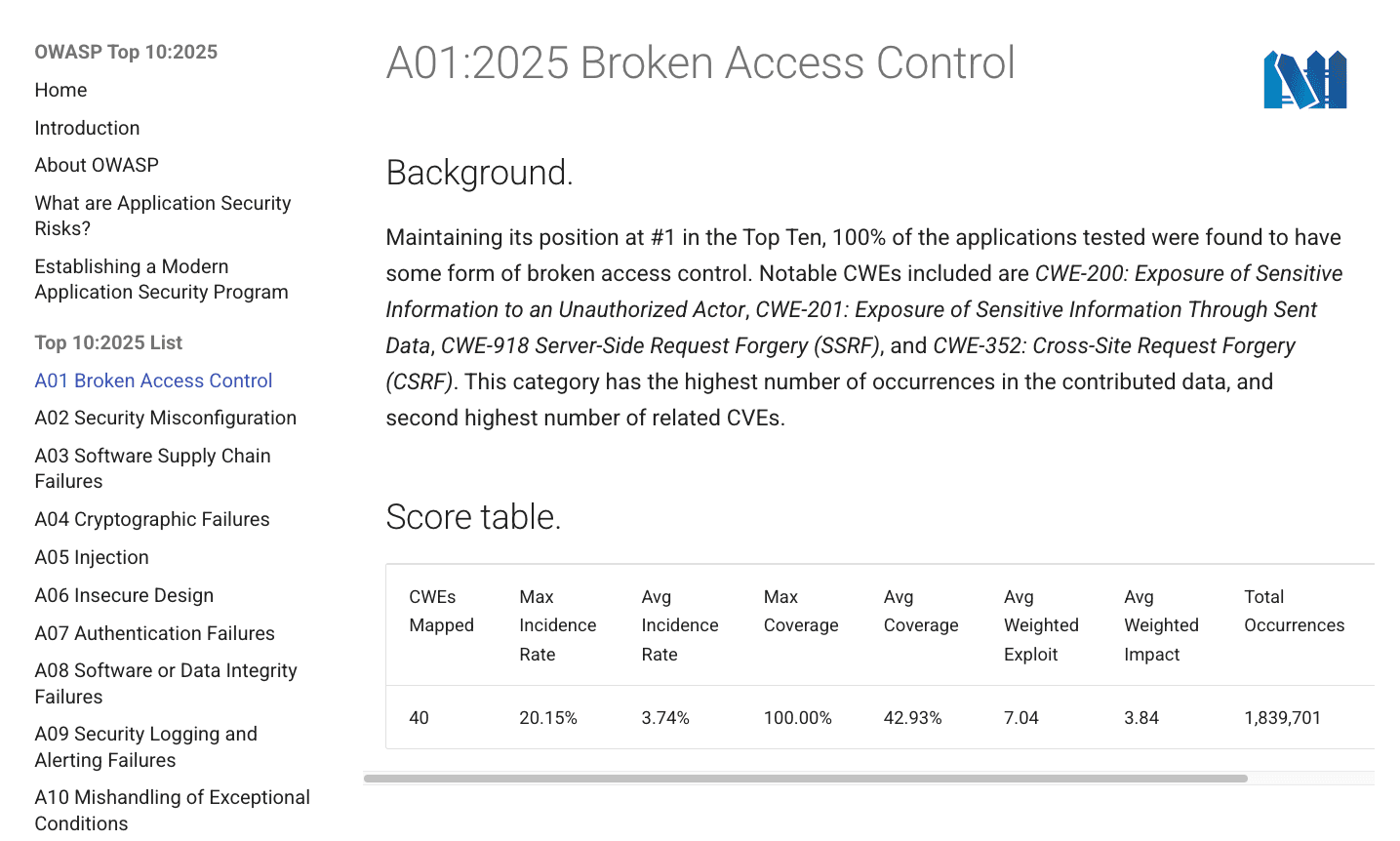 It's no surprise that Broken Access Control topped the OWASP Top 10 list in 2025 (and 2021) and this problem will be exacerbated as AI systems evolve.